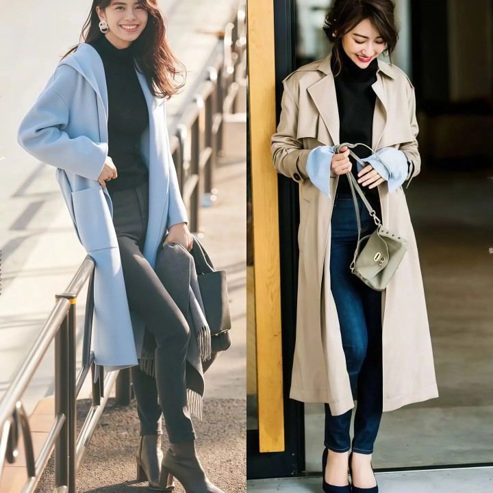 冬天穿各式各样的外套,更是离不开黑色毛衣的助力,修身款式的毛衣,搭配宽松有度的长外套,显瘦效果一流,同时还能解决寒冷,下身配裤、配裙都很美。
