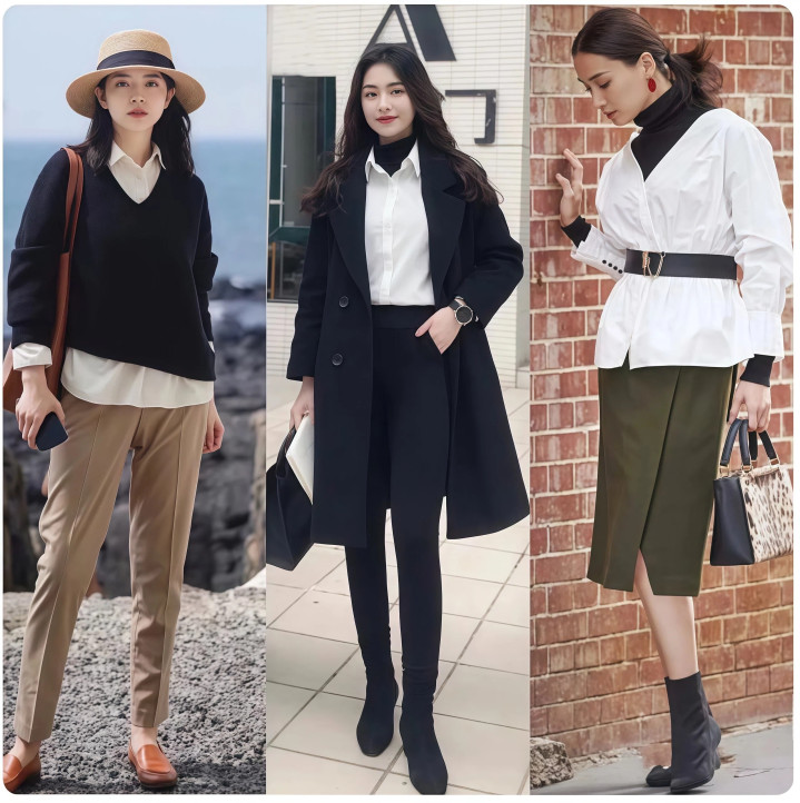 懂得玩转“叠穿”的女人,都是很有品位的,就算是最基础的两件叠穿,也能轻松演绎高级感。或者玩转“三明治叠穿法”,都是非常惊艳的,黑色高领毛衣当成打底层,中间叠穿衬衫,解开纽扣营造“V形”,拉长颈部线条。